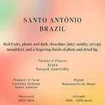 The farm’s steep terrain ensures hand-harvested cherries, enabling meticulous control and consistency. This lot of Arara variety is processed naturally under anaerobic conditions, yielding a clean, fruit-forward coffee with structure and depth, perfect for both espresso and milk-based drinks.