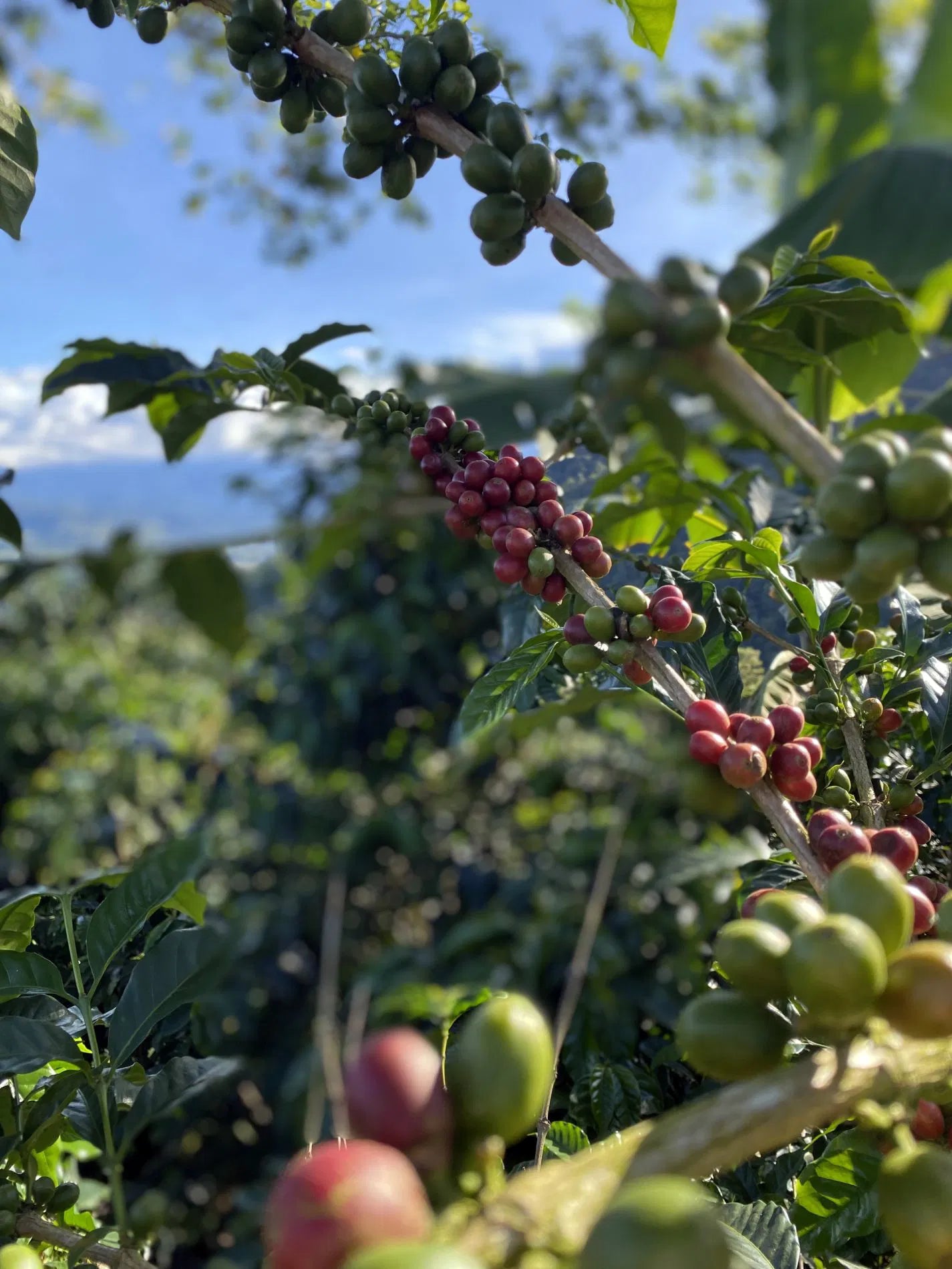 The Catiope variety in this selection is a cross between Colombian Caturra and Ethiopian heirloom varieties "Ca(turra)-(E)tiope." It was developed in the Colombian department of Cauca and obtained by Elkin and Banexport in 2014 on an experimental farm visit. The plant is a low-growing, high-bearing tree with slightly copper-colored leaves. The cherry color is generally full-red with a maturation Brix concentration of 20–22°.