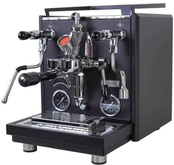 Externally, the Profitec Drive showcases signature design elements from the Profitec collection. Quick steam valves and Twist and Change portafilter handles allow for easy customization with various accents and materials. The iconic “P” cutout on the drip tray, along with black brew and steam pressure gauges, maintain the machine's elegant aesthetic. Inspired by the Pro 400, the Drive features a black frame beneath the drip tray and a cutout "Profitec" logo on the back panel.